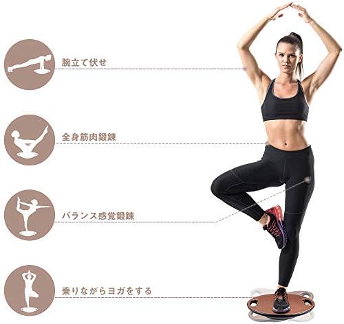 【バランスボードを使ったトレーニング】乗るだけの基本的な使い方から体幹バランスを鍛えるトレーニングもできます。片足立ち、スクワート、腕立て伏せ、ストレッチなどのトレーニングに適しています。