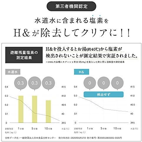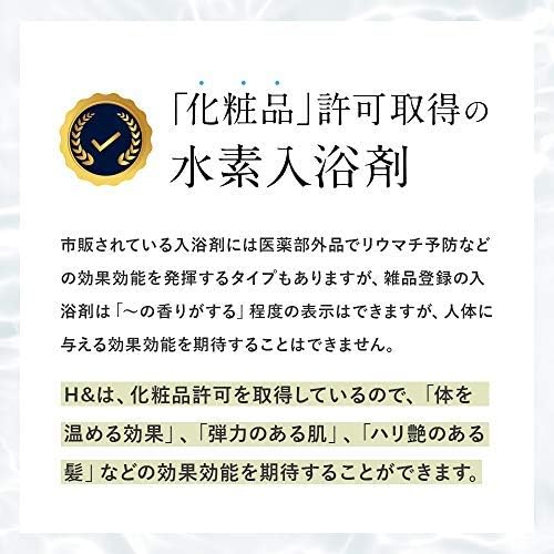 【化粧品許可を取得した入浴剤】H&は化粧品許可を取得しているので、体を温める効果とともに「弾力のある肌」「ハリ艶のある髪」などの効果を発揮することができます。