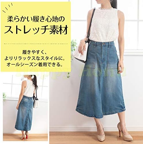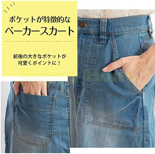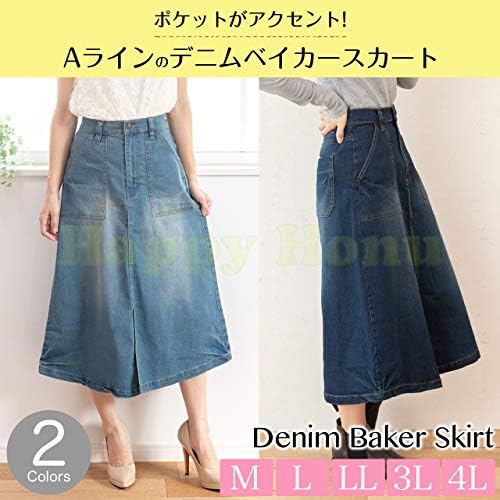 A-line skirt accented with front pockets The baker skirt features an outer pocket for a cute look. Material: 80% cotton, 19% polyester, 1% polyurethane; Sizes: M, L, LL, 3L, 4L; Colors: Navy blue.