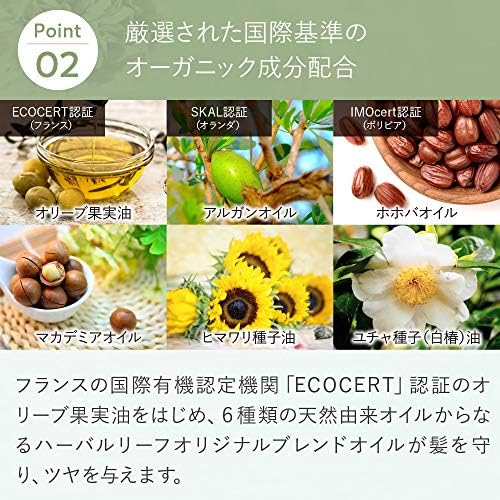 Herbal Leaf Organic Hair Oil is a non-rinse hair treatment formulated with carefully selected international standard organic ingredients that provide a soothing and fresh tea aroma. Protects your hair from damage caused by color and perm, lack of nutrients, moisture in the hair, heat and friction from UV rays and dryer.