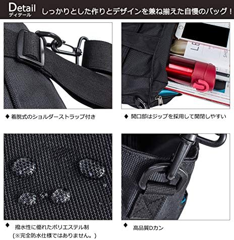 撥水性:素材はポリエステルで、防水性能がいいですので、雨や梅雨に都合がいいバッグです。