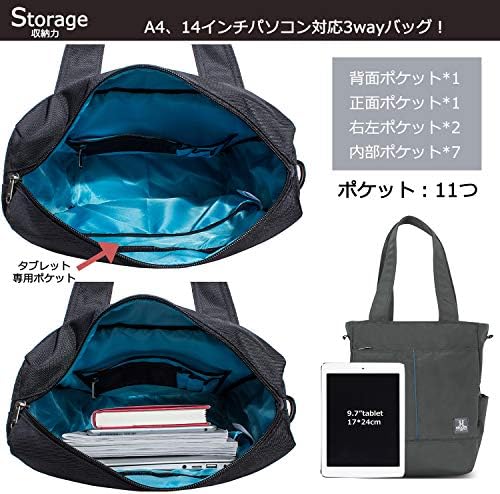 【大容量】A4サイズ収納可能で、14インチのタブレットやノートパソコンまで楽々入る大容量で、特にタブレットに対しての専用ポケットもあり、しっかりタブレットを守ってくれます。または、手帳、スマートフォン、書類、折り畳み傘、雑誌、化粧品など必要な物もたくさん収納可能です。なお、内側にも小物専用ポケットがいくつ付いていますので、財布、カード、万年筆などにふさわしく、落としモノはゼロであるように頑張りましょう。