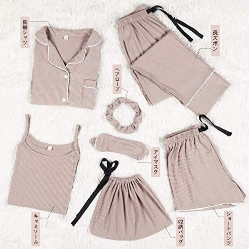 【7点セット内容】①キャミソール②長袖シャツ③ショーツ④ロングズボン⑤ヘアリング⑥アイマスク⑦収納ポケット。ご満足いただける7点豪华セット、一年中楽しく着られます。