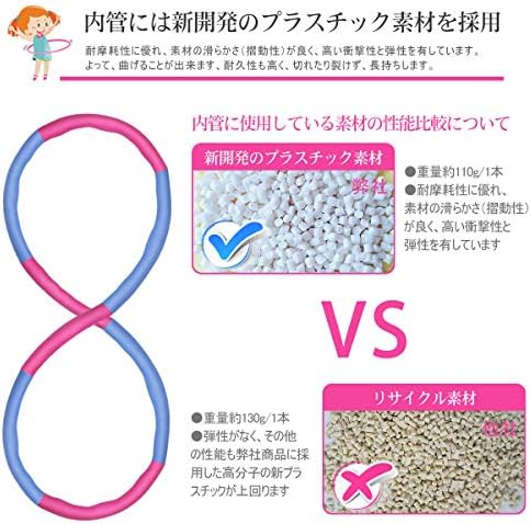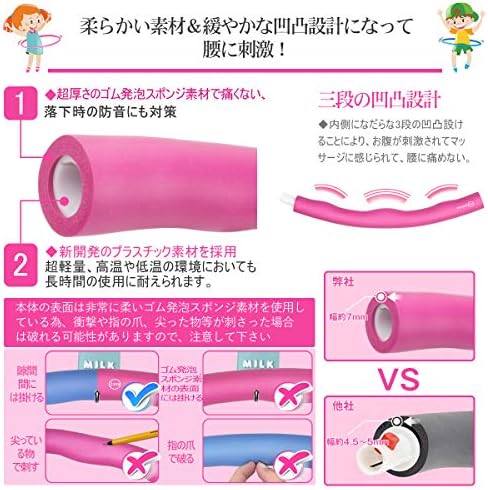 (Design to prevent lower back pain and noise protection) The interior of the hula hoop is designed with 3 unevenness levels, so it gently stimulates the area around the stomach as you turn. The interior is made of newly developed plastic material that is super lightweight, and can be used for a long time even in high or cold conditions. The exterior is made of thick sponge material, so it does not hurt your lower back and it also absorbs sound when dropped