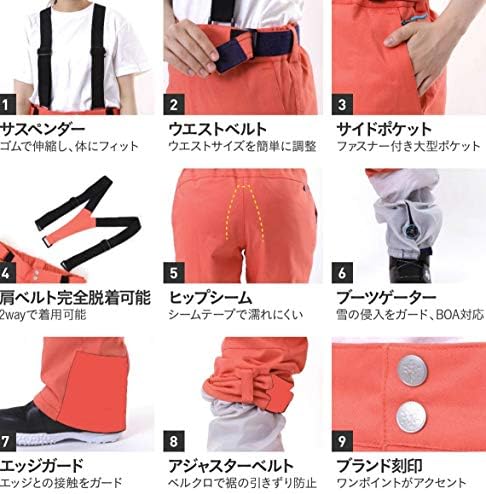 Edge Guard: To prevent the edge of the skis, we attach a strong guard on the inside of the hem to prevent it from ripping. Not only does it look good, but it is also made with attention to detail parts to ensure long lasting use. Suspenders: Firmly fixes slippage that cannot be avoided by a belt alone. Improves stability when riding, allowing for stress-free enjoyment. It can be detached, so you can freely match your mood and style.