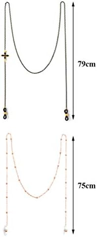【適合の長度】サングラスチェーンは全長が約75cmと79cmです。スムーズに頭からかぶることができ、且つ眼鏡を外した時に胸元の位置にくる絶妙な長さです。テーブルにぶつけてしまう事故も軽減できます。掛けた時に、顔周りになだらかな曲線を描いて、とてもエレガントです。