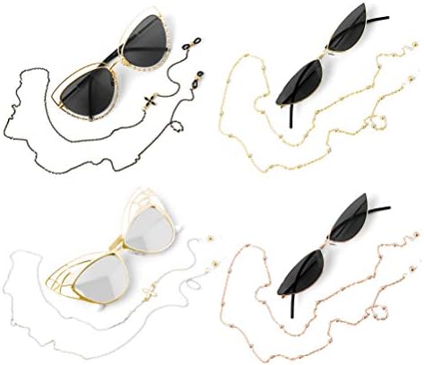 Idealeben メガネチェーン おしゃれ 4本入り 眼鏡チェーン レディース 四つ葉のクローバー パール 男女兼用 メガネ ストラップ 落下防止