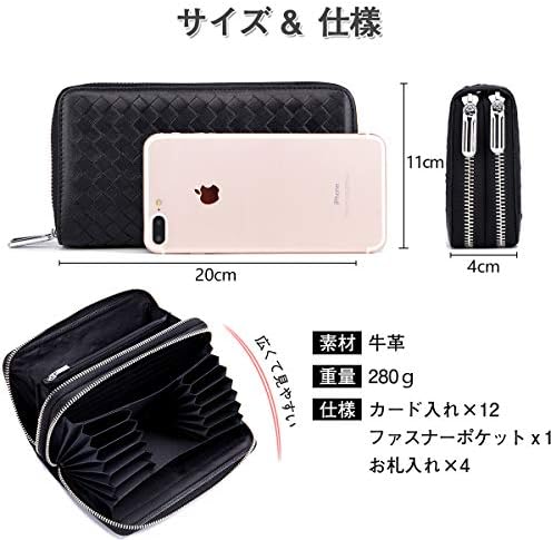 【仕様&サイズ】サイズ:(約)縦20×横11×厚さ4cm 重量:280g カード入れ×12 ファスナーポケットx1 お札入れ×2 券入れx2