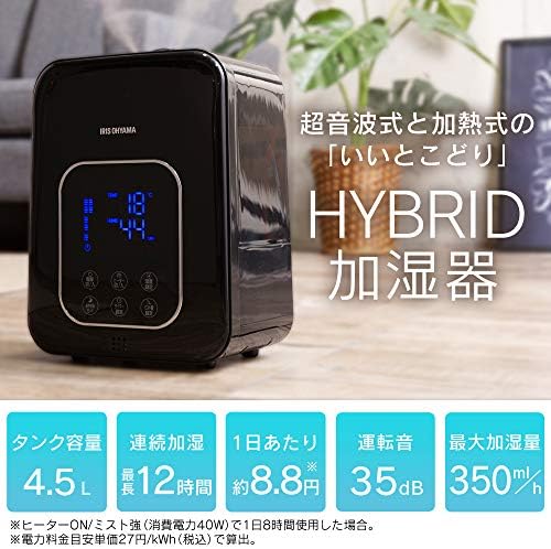 超音波式+加熱式を組み合わせたハイブリッドタイプの加湿器。