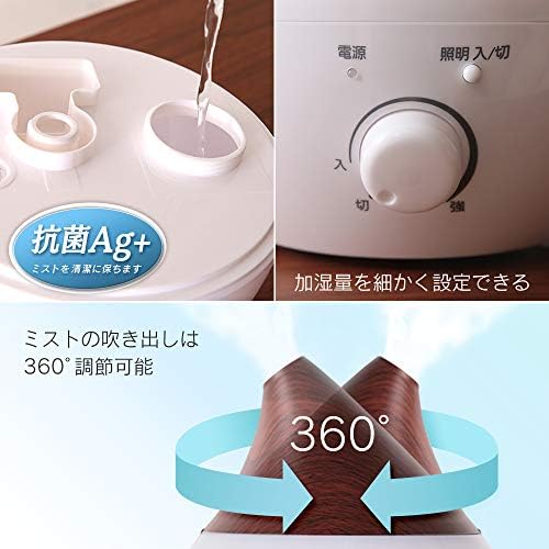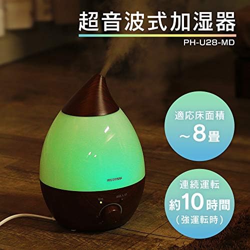 適用床畳数:木造和室 約5畳、プレハブ洋室 約8畳加湿量:強(最大)運転時 約280ml/h加湿時間:強(最大)運転時 約10時間タンク容量:約2.8L本体重量(kg):1.5