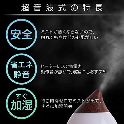 しずく型の超音波式加湿器です。抗菌カートリッジ付きで清潔な加湿ができます。アロマ対応(専用パット3枚付属)LEDライト付き(7色)