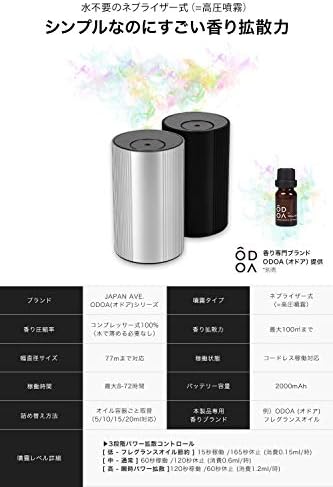 ![JAPAN AVE.(ジャパンアベニュー) フレグランスディフューザー 車載 アロマディフューザー 車 オイル / 芳香剤 噴霧式 【 ネブライザー式 / 水不要 】 コンプレッサー式 ディフューザー 静音 ミスト量調整 タイマー機能 ODOA(オドア) 詰め替え エッセンシャルオイル [メーカー1年保証] (ブラック) JAPAN AVE.(ジャパンアベニュー) フレグランスディフューザー 車載 アロマディフューザー 車 オイル / 芳香剤 噴霧式 【 ネブライザー式 / 水不要 】 コンプレッサー式 ディフューザー 静音 ミスト量調整 タイマー機能 ODOA(オドア) 詰め替え エッセンシャルオイル [メーカー1年保証] (ブラック)](https://images-na.ssl-images-amazon.com/images/I/41yow2i44lL._AC_.jpg)