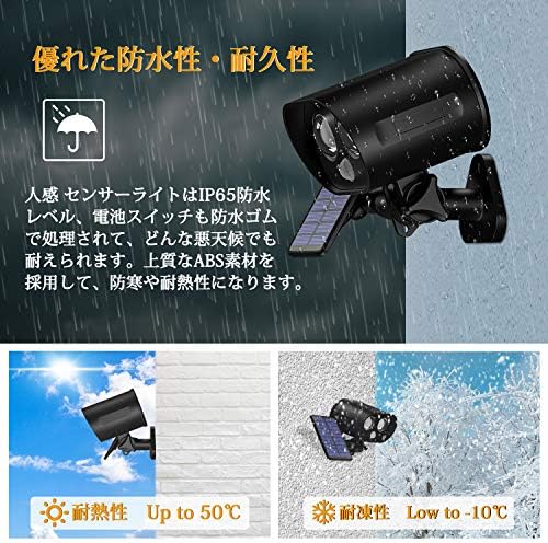 LED ソーラーライトは優れたIP65防水材料で作成されて、梅雨や台風などの大雨の中でも安心して使えそうです。それだけなく、上質なABS素材を採用して、耐熱性・耐凍性も大幅向上します。