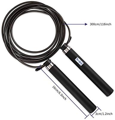 Non-slip Handle & Adjustable Length: The jump rope handle is ergonomically designed with a shape that is excellent in anti-slip effect, and provides a firm grip. Rope Length: 300cm, easily adjustable to the desired length and suitable for all heights.