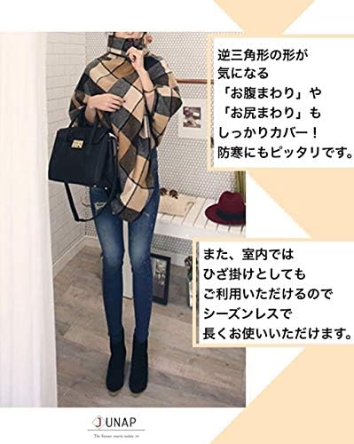 逆三角形な形が気になるお腹まわりやお尻まわりもしっかりカバー。また、室内ではひざ掛けとしてもご利用いただけるのでシーズンレスで長くお使いいただけます。