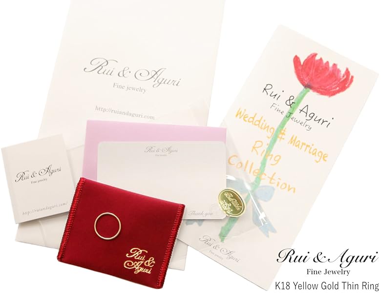 可愛いリングポーチ、メッセージカード付き、イエローゴールド( K18 )指輪のプレゼントセット