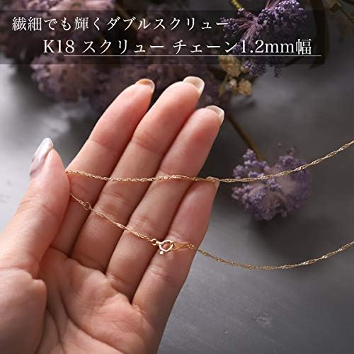 K18 ゴールド スクリュー チェーン ネックレス 1.2mm幅 レディース (50cm -3cm アジャスター付 ) 18金