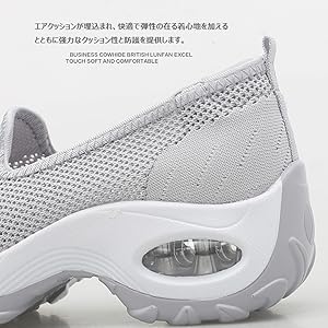 エアクッション付きなレディースシューズは、学生様の運動会や、通勤、通学などの幅広く範囲ご活躍なランニングだし、カジュアルの通常な短距離旅行かハイキングかのウォーキングシューズのお役割もご提供いたします。クッション性あり、踵への衝撃も軽減してくれます。