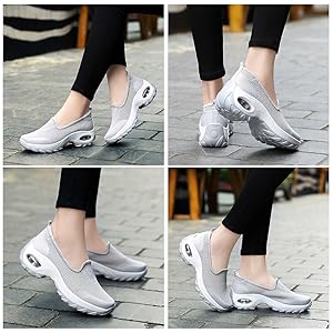 (Wide range of use) These women’s shoes with air cushion are great for a wide range of activities, such as for student sports events, commuting to work or school, and also can be used as walking shoes for casual and regular short trips or hiking. Cushioning reduces heel impact.