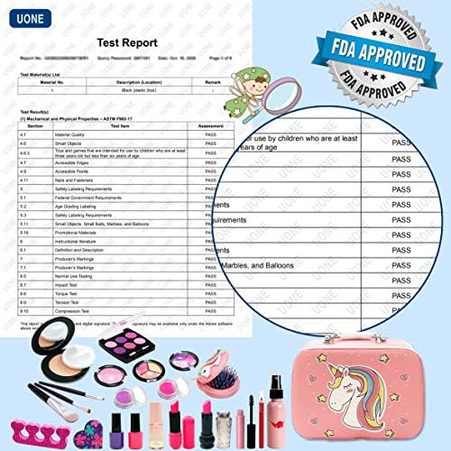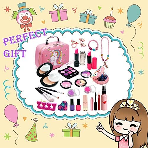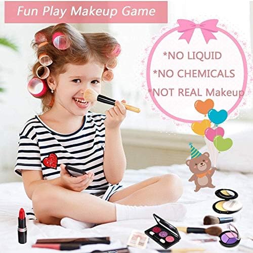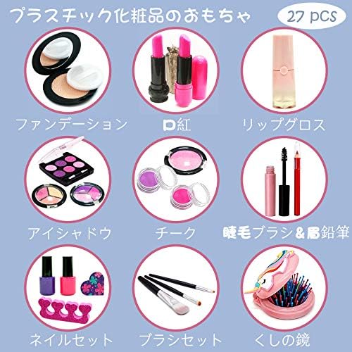 (Cute and Stylish Princess Bag) Your cute princess will have their own makeup toy set. Our kids cosmetics not only have all your cosmetics, but also have a cute cosmetic bag. When the game is over or travelling, the princess will keep her cosmetics organized. Easy to carry. She could play with her favorite play-make-up kit wherever she goes