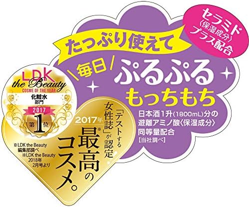 うるおいを与えて肌の状態を整える日本酒※(コメ発酵液・保湿成分)配合の化粧水です。保湿効果の高いアミノ酸(グルタミン酸・アルギニン・ロイシン)とセラミドをさらにプラスしました。※菊正宗の純米吟醸酒を配合●とろみのある液がかさつきや乾燥が気になる部分にすーっとなじみ、肌荒れのないしっとりもちもちの素肌に導きます。コットンやティッシュペーパーに充分な量を含ませ、5分程度フェイスパックをするとさらに効果を感じていただけます。●顔はもちろん、全身用ローションとしてシャワー後やお風呂上りにたっぷりとお使いください。●冷蔵庫で冷やしてお使いいただくと、ひんやりと肌を引き締めます。●使いやすいポンプ付ボトル●弱酸性・無着色・無鉱物油