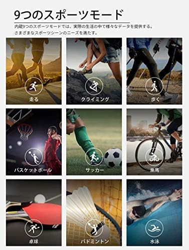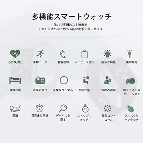 【健康管理&運動追跡】日付、歩数、カロリーの消費、睡眠検測、心拍の計測、スポーツモード、遠隔撮影など多機能搭載したスマートウォッチです。毎日腕につけるだけで、24時間に心拍数を把握、運動中の運動時間、歩数、距離などのデータは大画面の表示やアプリでのチェックができます。また、毎日の睡眠状態を把握し続ける事で活動バランスを知ることができ、睡眠の質のチェックに役立ちます。はっきりに運動データを把握し、自分の仕事と休憩及び運動時間を合理的に計画し、健康な一日を過ごしましょう。
