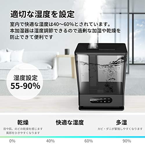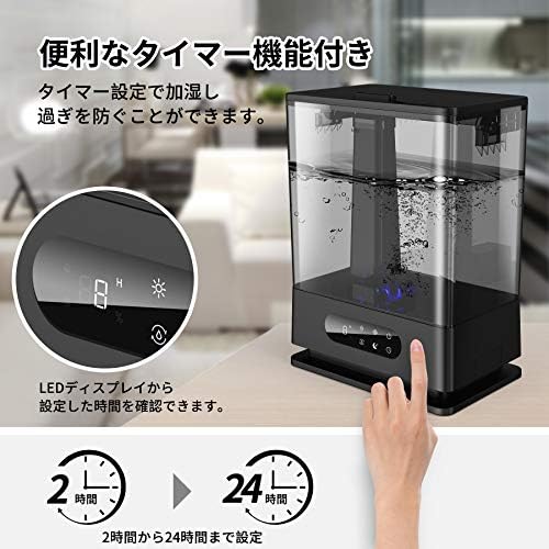 Humidity can be set from 55% to 90%.Sets humidity depending on the dry state of the skin.Stay hydrated.This humidifier has a timer function, so it is convenient to stop the humidifier at a specified time.Set from 2 to 24 hours.