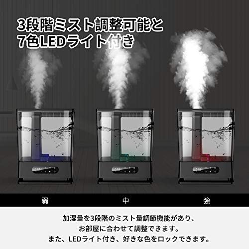 3-Stage Mist Adjustment / 7-Color LED Lights: The humidification volume can be adjusted to fit your room. In addition to the mist volume adjustment, the tank part is also equipped with a 7-color LED light that can illuminate the tank with a light of your choice. You can enjoy it according to your mood and occasion. You can also turn it off when you sleep at night, when you don’t need the light