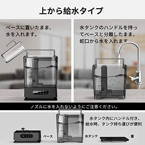 This humidifier has a mist direction adjustment element that changes the direction of the mist when installed on the mist vent.It can prevent your surroundings from getting wet.