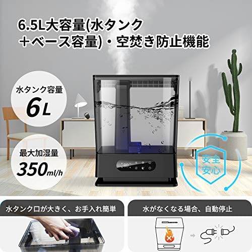 Large Capacity 1.2 gal (6.5 L) / Empty Firing Prevention: The large capacity of water can fit up to 1.2 gal (6.5 L) (water tank + base capacity). No need to fill frequently. Maximum humidification is 350ml/h. It will moisturize even large rooms. Recommended for living rooms, bedrooms and more. (Compatible Numbers: Wooden Japanese Room 20 Tatami / Western Room 32 Tatami) When water runs out after sleeping or when you go out, it will automatically stop operating, so you don’t have to worry about empty firing that will continue to humidify it. You can use it with confidence