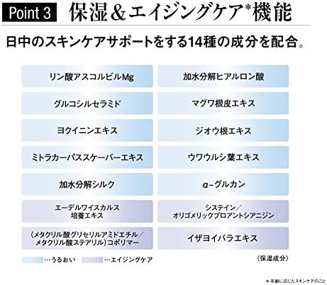 All ingredients: Cyclopentasiloxane, water, zinc oxide, BG, cyclomethicone, DPG, capriyl methicone, PEG-9 polydimethylyldimethicone, triisosteepic acid polyglyceryl-2, dimethicone, (vinyl dimethicone / methicone silsquoxane) cloth polymer, (HDI/trimethylene). Hexirlact Crosspolymer, Dysteraldimonium hectorite, Polyglyceryl diisostearate – 2, Ascorbyl Mg, Hyaluronic Acid, Glucocylceramide, Magwa Root Extract, Yoginin Extract, Geo Root Extract, Mitra Carpus Scuba Extract, Hydrolyzed Silk, α-Glucan, Edelweiss Skull Cultivation extract, sister In/Origomeric Proanthocyanidine, (glycerylamide ethyl/methacrylate), copolymer, sodium hyaluronic acid, glycerin, PVP, hydroxethyl cellose, sodium alginate, xanthan gum, chitosane, cetearyl glucoside, poly-batamate, sodium glutamate, isayoide. Extract, Nylon-1 2, PEG-9 dimethicone, (dimethicone / vinyl dimethicon) cross polymer, stearic acid, magnesium sulfate, isostearic acid, hydrogen dimethicone, sodium citrate, 5 sodium pentatate, citric acid, biosaccharide gum-1, alumina, hydroxyapatite, polymethylsesquoxane, polymethylsesquoxane. Phenoxyeta No, [+/-] Titanium oxide, talc, tin oxide, methicone, chromium oxide, guunjou, mica, silica iron, hydroxide Al