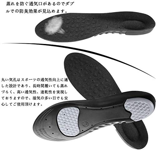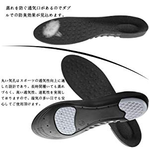 【抗菌・防臭と通気性】防臭素材を使っているため、細菌の繁殖活動を抑制することによって、悪臭の発生を防ぐことができます。丸い気孔はスポーツの通気性向上に適した設計であり、長時間履いても蒸れづらく、高い通気性、速乾性を実現しておりますので、湿気の多い日でも安心してご使用頂けます。蒸れ足の人にも適します。炭素繊維で嫌な匂いを減らせます。