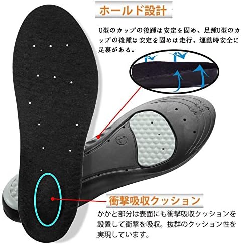 【柔軟性&安定性】柔らかい材質で作成したインソールで、アーチの部分柔軟性が豊富で、動きより足の複雑な変化に対応できるフレキシブルな機能が持ち、適度な弾力で足にフィットすることで心地よさが増し、さらにかかと部分は全体を包み込むホールド設計になっているため、抜群の安定感を実現し、アーチがポンプの役割を果たし、自然に血行を促進し、つかれを和らげ、楽になります。