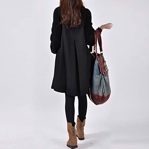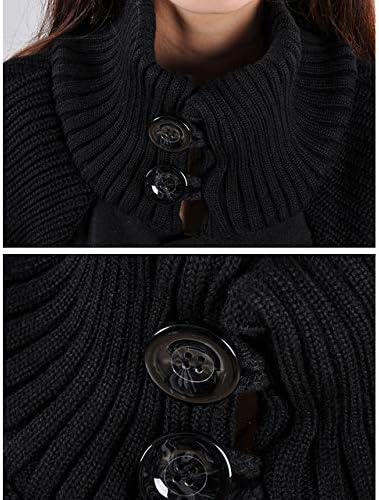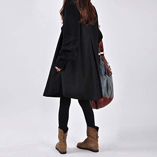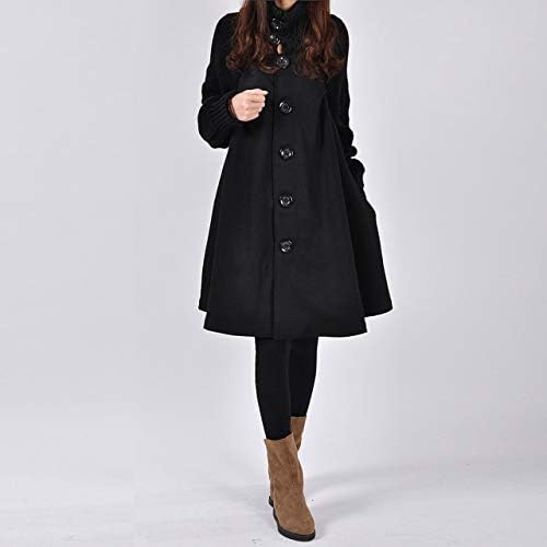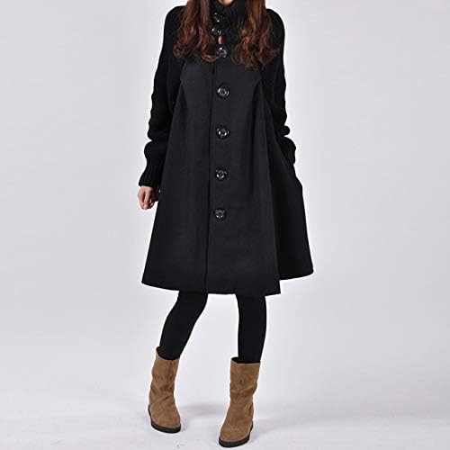Little Confe Women’s High Neck Rib Coat, Raglan with Large Buttons, Black, Gray, M-XL