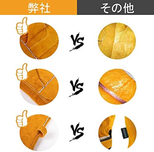 【卓越した品質】1. 耐熱性:高品質の純牛革は,手袋が同タイプの製品に負けない優れた耐熱性を確保しています。2. 通気性:通気性も抜群で水分や汗は簡単に革の毛穴から排出でき、裏地が綿で、防寒.保温性を兼ねながら蒸れにくく、長時間の 作業用 にも適しています。3 . 耐久性:優れた素材や熟練の縫製工芸は、グローブが長い間、見事に使命を達成できるようにしています。