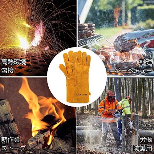 Lixure 耐熱 手袋 プレミアム 牛革 溶接用手袋 40cm 男性 女性 兼用 耐熱グローブ 厚手で 柔らかい 通気性 耐熱性 レザーグローブ リガー手袋 キャンプ、BBQ、薪作業、鉄鋼作業、土木作業、建築作業、園芸、猫を飼う16inch