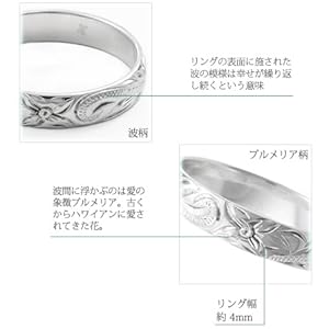 ■ Product information: The ring is approx. 0.2 inches (4 mm) wide, so it is easy to use even in everyday situations. Although it is slim, the wave and plumeria pattern is beautifully carved. Also popular as a pair or pinky ring.