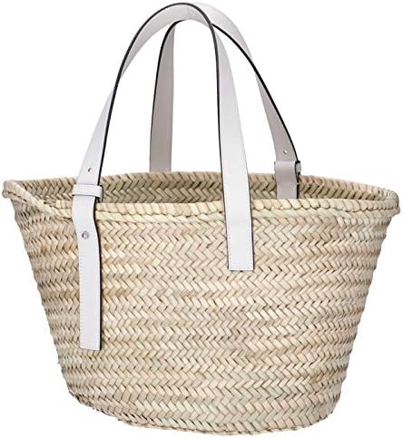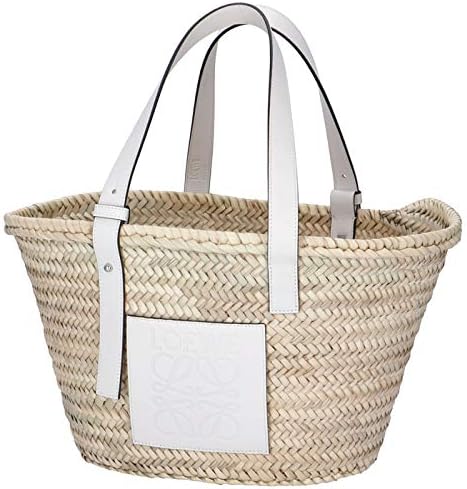 LOEWE爽やかな雰囲気のバスケットバッグ。ラフィアを使用し丁寧に編み込まれたボディに、ナチュラルなレザーのハンドルとパッチを施した涼しげなバッグ。特徴的なレザーハンドルが目を惹く仕上がり。フロントにあしらわれたレザーパッチには大ぶりのブランドロゴの型押しが施され、シンプルなバッグに華を添えます。