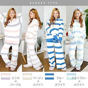 定番のボーダー柄パーカートップスとパンツがセットになったルームウェア。4色のキュートなボーダー柄トップスはフォトジェニックにもぴったり。