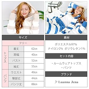 A Luanna Jena(ルアンナジェナ)のルームウェアは品質管理を徹底しており、お客様の要望にお応えする商品の提供を心掛けております。当商品も非常に暖かく手触りもよくお客様に喜ばれております。