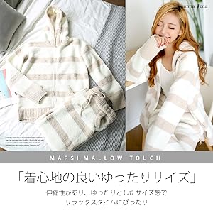 肌触りはとろけるようなマシュマロタッチ。やさしい肌触りのルームウェアに包まれて、極上のリラックスタイムをお過ごしいただけます。