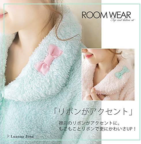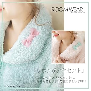 【シャーベットカラー】ピンクとグリーンのシャーベットカラーはやさしい色合いで夜のリラックスタイムにぴったり。えり元のリボンアクセントでさらにかわいさUP!寒い冬の夜はキュートなルームウェアで楽しく過ごしましょう。