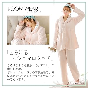 【とろけるマシュマロタッチ素材】とろけるような肌触りのボアフリース素材を使用。ボリュームたっぷりの厚手生地で、寒い季節でもやさしくカラダを包んで温めてくれます。