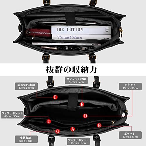 【十分な収納力・トートバッグ】就活やビジネスで必要なA4ファイルや15.6型ノートパソコンを収納でき、折りたたみ傘、携帯電話、タブレット、コスメポーチ、長財布、サングラスお弁当箱などの荷物が収納可能です。