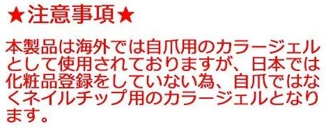 本製品は海外では自爪用のカラージェル として使用されておりますが、日本では 化粧品登録をしていない為、自爪ではな くネイルチップ用のカラージェルとなり ます。