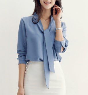 Pullover type long sleeve chiffon blouse with bow tie (shirt cut and sew)