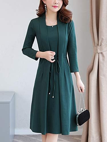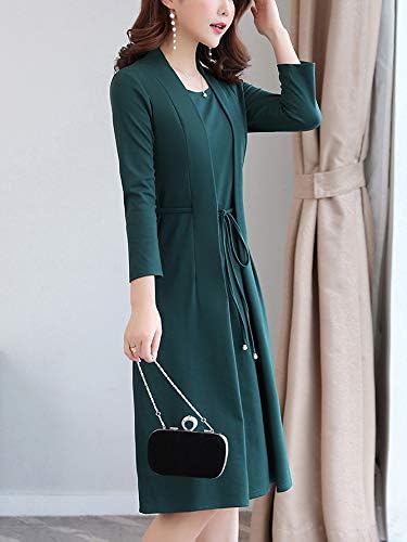 ウエストのリボンをキュッと結べば、きれいなAラインが完成します。重ね着風デザインが体型カバーにもなり、細見せ効果も◎