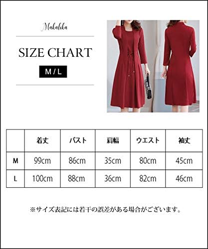 ・L:着丈 100cm, バスト 88cm, 肩幅 36cm, ウエスト 82cm, 袖丈 46cm