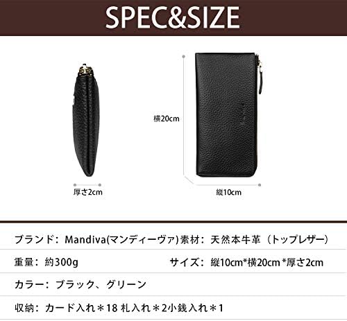 収納可能サイズ: 各種ギフト券、スマートフォン、通帳、パスポート等収納可。スペック : 札入れ×2、小銭入れ×1、カードポケット×18。 本体重量:約300g、本体サイズ:20cm*10cm*2cm。