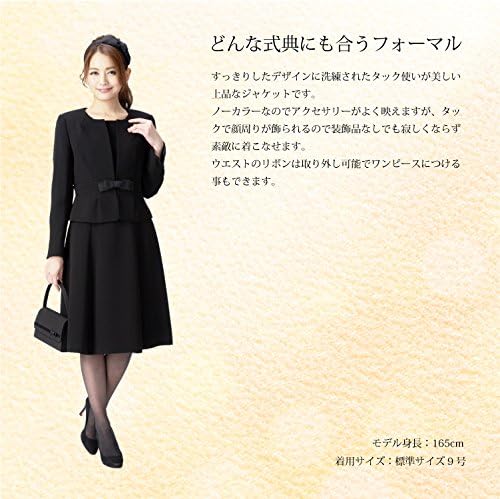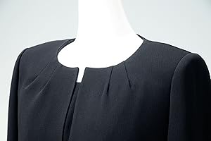 すっきりしたデザインに洗練されたタック使いが美しい上品なジャケットです。 ノーカラーなのでアクセサリーがよく映えますが、タックで顔周りが飾られるので装飾品なしでも寂しくならず素敵に着こなせます。 ウエストが高めにマークされ身頃がすっきりコンパクトに見えます。 裾に向かってタックがふんわり広がるので、ウエストが細く見えます。 切替にはサテンが繊細に組み込まれ、くびれのメリハリがより引き立ちます。 リボンはラインと共生地のサテンで作られているのでジャケットとの相性ぴったりです。 ノータックでフラットなリボンなので甘くなり過ぎず、大人の女性にもお似合いです。